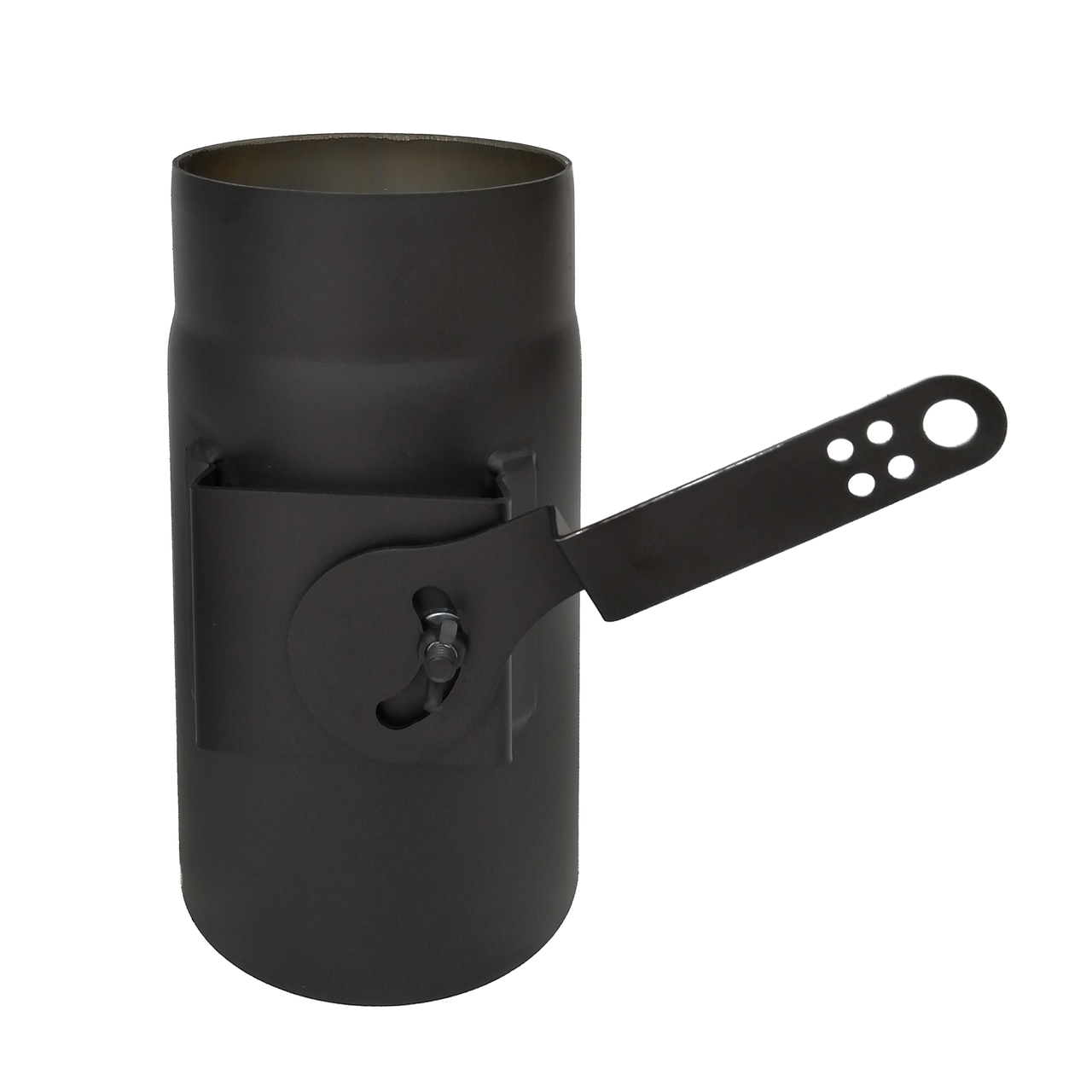 Регулятор тяги виконує важливу функцію в побудові сучасного димоходу. Він допомагає забезпечити оптимальні умови горіння, контролює рівень споживання палива, дозволяє уникнути надмірного нагріву системи та покращує зберігання тепла в приміщенні. Виріб виготовлений із якісної низьковуглецевої сталі і покритий термостійкою фарбою, нанесеною методом запікання. Таке покриття має високий рівень зносостійкості та зберігає колір навіть при тривалому впливі високих температур. Найчастіше димоходи чорного кольору використовуються як проміжна ланка між опалювальним приладом та основним димоходом із нержавіючої сталі або цегли. Вони ідеально поєднуються з печами, камінами та іншими пристроями, виконаними в аналогічному чорному кольорі.